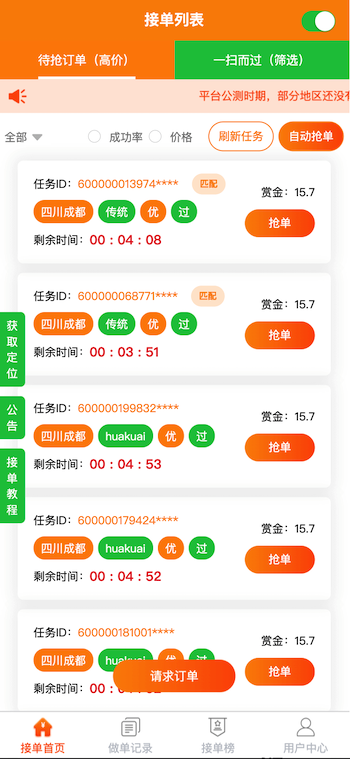 類似“碼幫平臺/FZ輔助/碼力平臺/閃電接單/蜻蜓輔助/雛菊輔助”,第三方微信輔助注冊任務管理平臺——“蜜蜂”任務平臺管理系統(tǒng),幫助有大量微信注冊需求的商家和想要0元投入月入過萬的兼職人員搭建連通的橋梁。系統(tǒng)由用戶端H5/APP、商家端H5/APP、地推商戶端H5、商家端PC、平臺端PC架構(gòu)而成,支持用戶隨時提現(xiàn),支付寶實時到賬,商家端一鍵掃碼下單,方便快捷;系統(tǒng)支撐商家每天10萬+的訂單下發(fā)和用戶隨時隨地搶單,做單,賺取傭金,提現(xiàn)等更多功能。。。